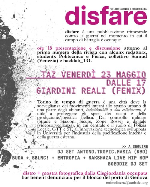 E' tempo di Rivolta! Presentazione del nuovo numero di Doppio Filo con banchette e documentario Thursday, Dec 18, 06:30 PM-11:30 PM Thursday 18 December 23:30 Kontiki Via Cigliano, 7 - Torino fanzinefreepalestinelibrilottapalestinaproiezione