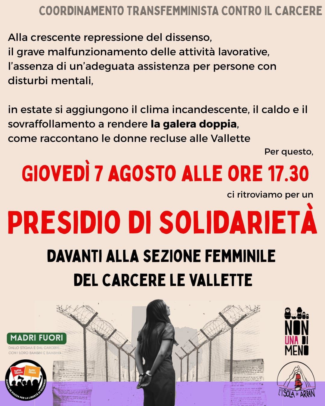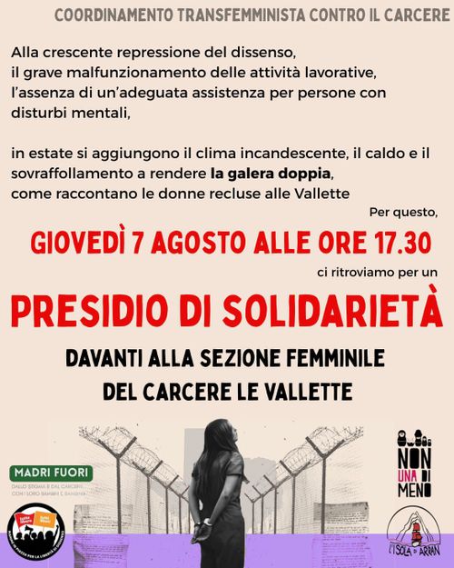 Torino da sempre Γ¨ un carcere piΓΉ che problematico, la nuova "gestione" nel reparto femminile non semplifica le cose, il pacchetto sicurezza ci impedisce anche le forme di protesta piΓΉ pacifiche, lotte che il femminile, per richiamare l'attenzione, porta avanti da anni, tanto da essere definite "LE RAGAZZE DI TORINO".
