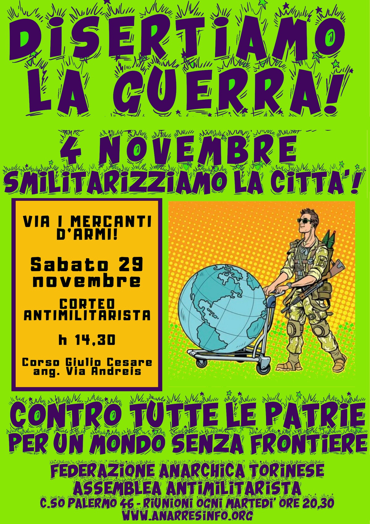 4 novembre. Disertiamo la guerra, smilitarizziamo la città