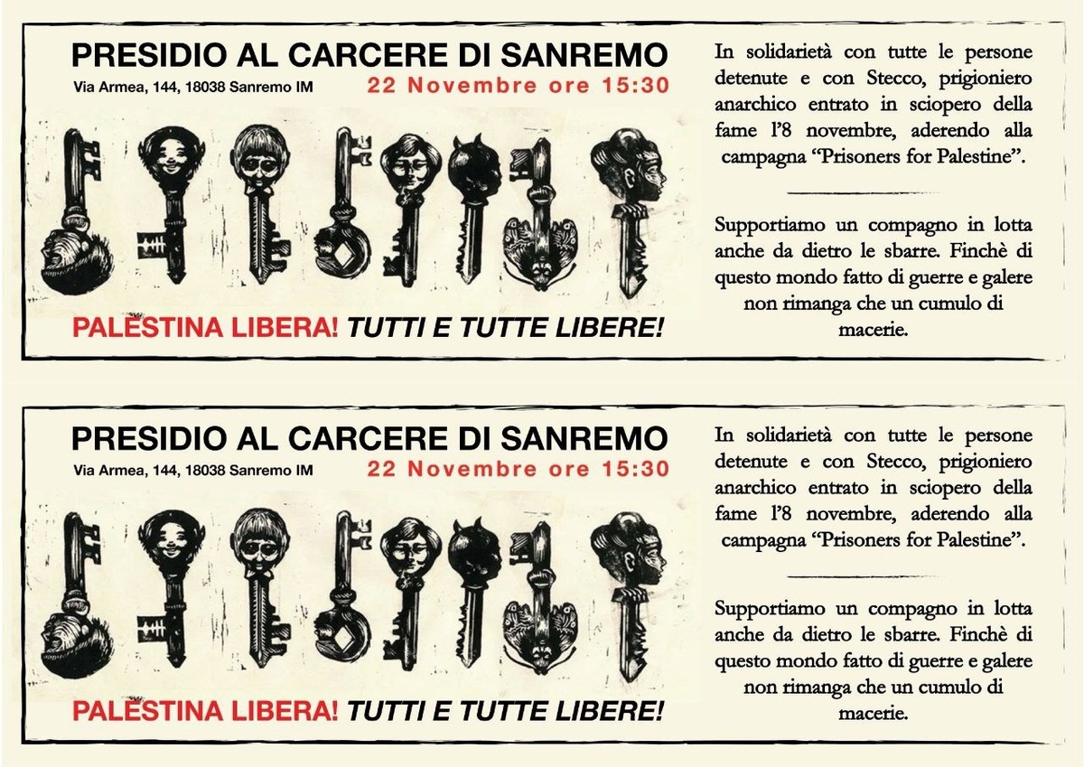 https://ilrovescio.info/2025/11/17/sanremo-imperia-22-novembre-presidio-al-carcere-in-solidarieta-con-stecco-e-tutti-i-prigionieri/