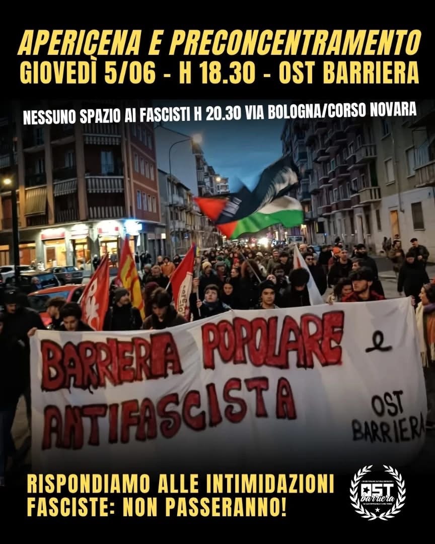 Non ci piegheremo al clima di minacce e intimidazioni. Questo giovedì ci troveremo alle 18.30 ad Ost Barriera per un'apericena di quartiere, per raggiungere insieme il presidio e corteo delle 20.30 in Via Bologna/Corso Novara
