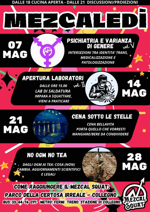 Con l'arrivo della bella stagione, il Mezcal Squat decide di dare una spolverata ai suoi laboratori e avviare una serie di incontri per condividere pratiche e saperi. Per il mese di marzo inizieremo con il laboratorio di saldatura. Vuoi imparare a saldare barricate, ma anche costruirti un comodino? Vieni e sbrocca assieme a noi! Vi aspettiamo a partire dalle 15:00 per saldare assieme e dalle 18:00 per cucinare assieme.