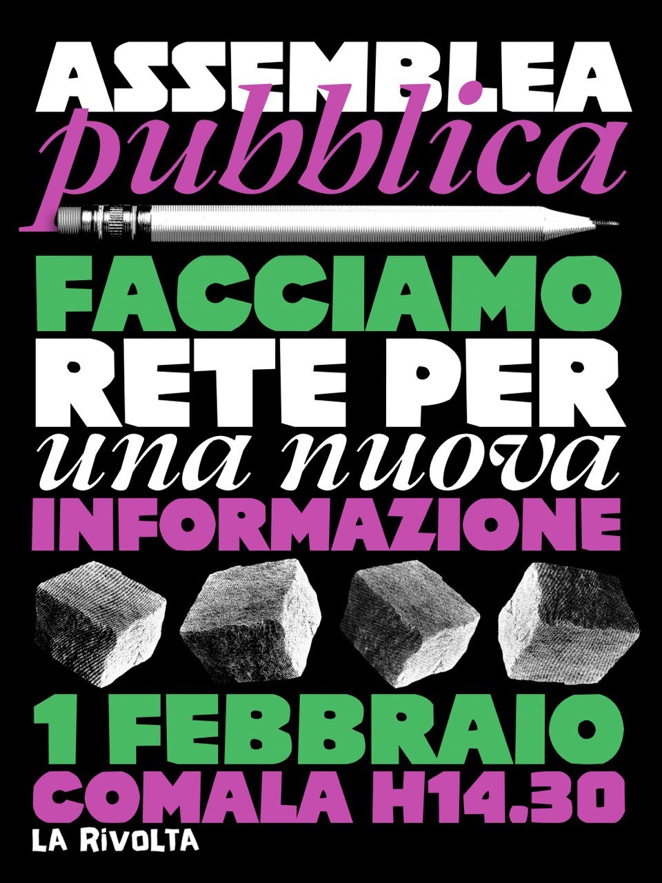 Per maggiori info e aggiornamenti scrivete a rivista.larivolta@protonmail.com oppure su instagram https://www.instagram.com/rivista.larivolta?igsh=emRpZ3lreG04ZGxu&utm_source=qr