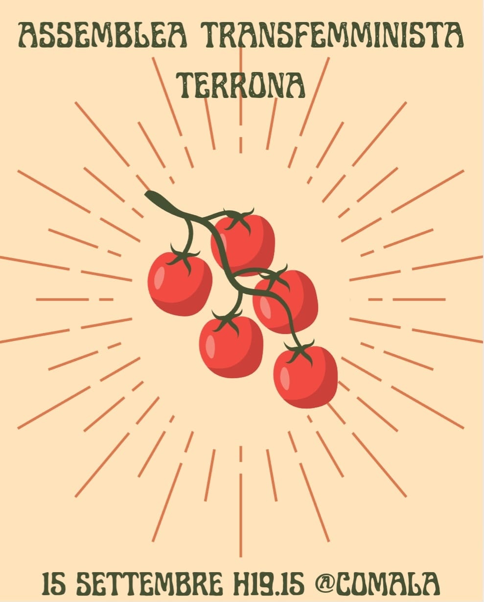 Dopo la pausa estiva, ci ritroviamo lunedì 15 settembre alle ore 19:15 al Comala per la prossima Assemblea Transfemminista Terrona. L'assemblea sarà non mista e chiediamo, quindi, alle persone non terrone e agli uomini etero cis di non partecipare in quanto è nostra volontà rivendicarci lo spazio.