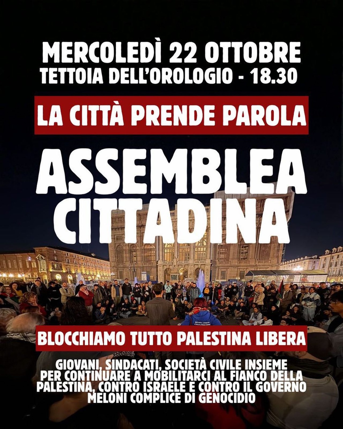Raccogliamo e rilanciamo l’appuntamento dell’Unione Sindacale di Base per un’assembela cittadina operativa per continuare a mobilitarci al fianco della Palestina, contro Israele e contro il governo meloni complice di genocidio.
