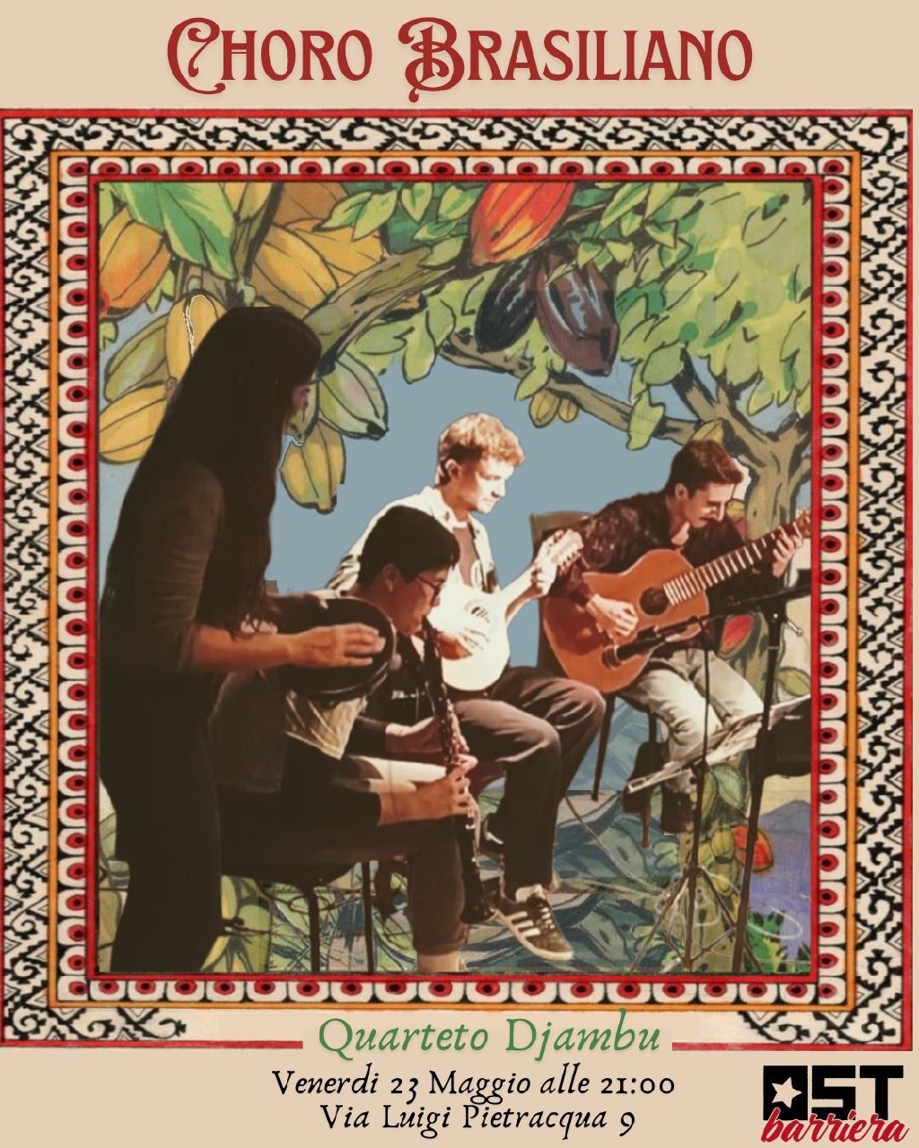 Il Djambu 4tet porta in scena l'essenza della musica brasiliana tradizionale, con un focus sullo choro, genere oadre della musica brasiliana, ricco di ritmi irresistibili e virtuosismi tecnici. Ogni concerto del gruppo è un'esperienza coinvolgente, grazie alla straordinaria sintonia tra i musicisti e alla loro capacità di trasmettere energia, voglia di muoversi e passione. Il quartetto regala performance uniche, che affascinano e conquistano il pubblico con la loro maestria.