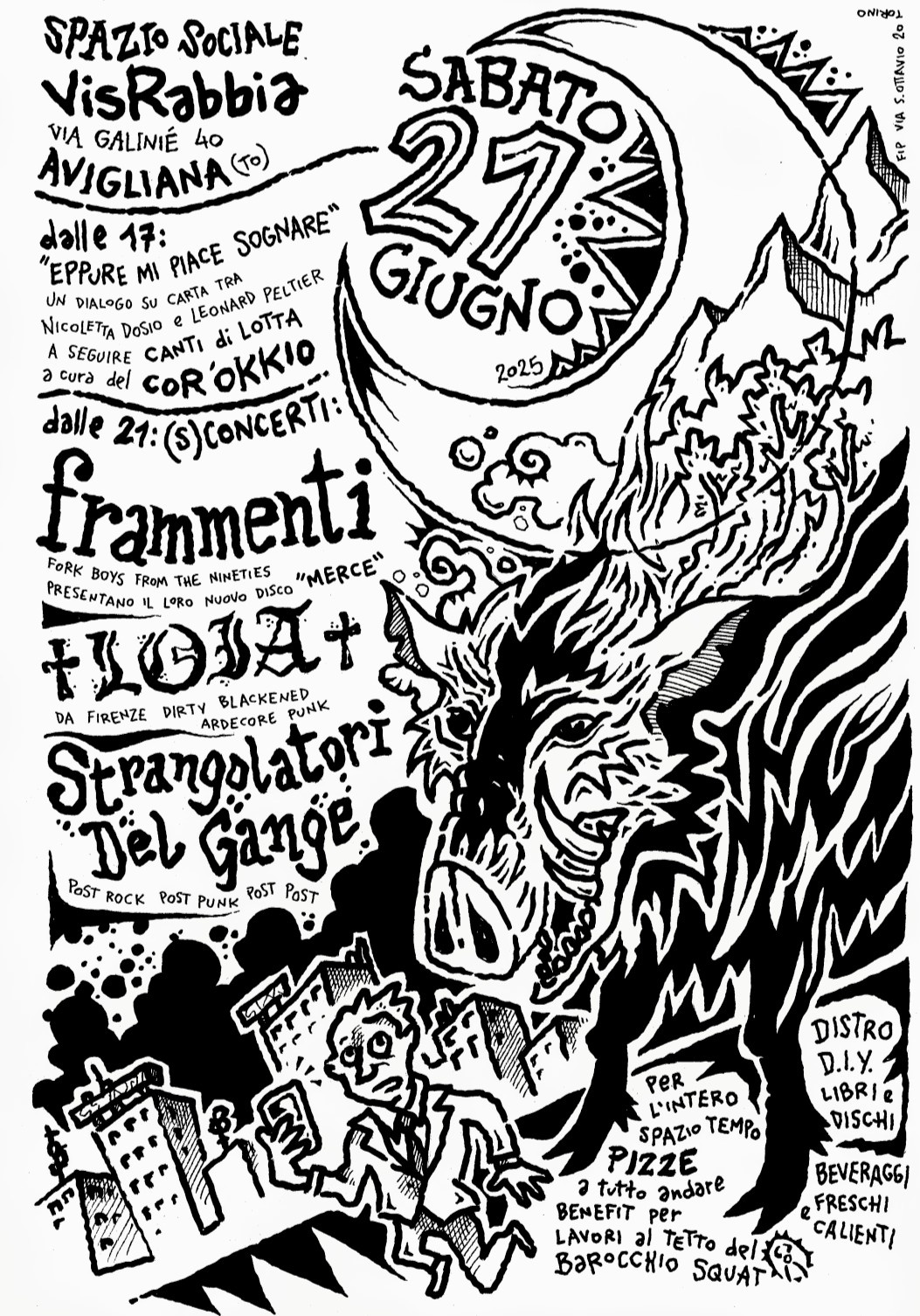Per l'intero spaziotempo pizze a tutto andare benefit per i lavori al tetto del Barocchio squat, distro d.i.y. di libri e di dischi, beveraggi freschi e calienti