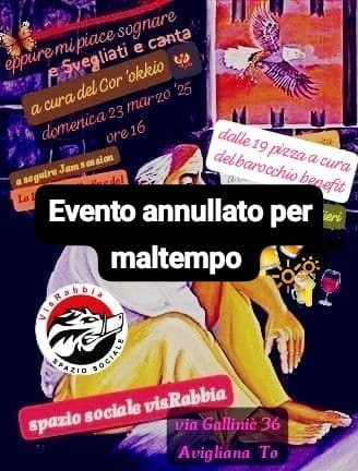 Domenica, 23 Marzo 2025 ore 16.00 c/o spazio sociale VisRabbia Via Galliniè 36 Avigliana TO