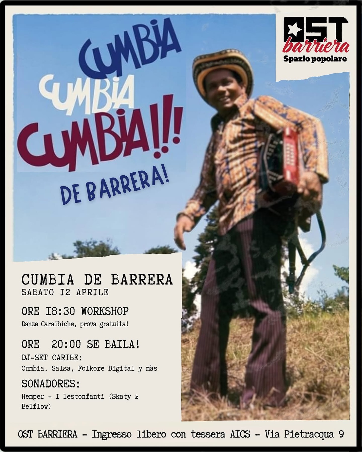 Sabato 12 Aprile dalle 18:00 ad @ost.barriera torna #globalbeats Cumbia de Barrera!