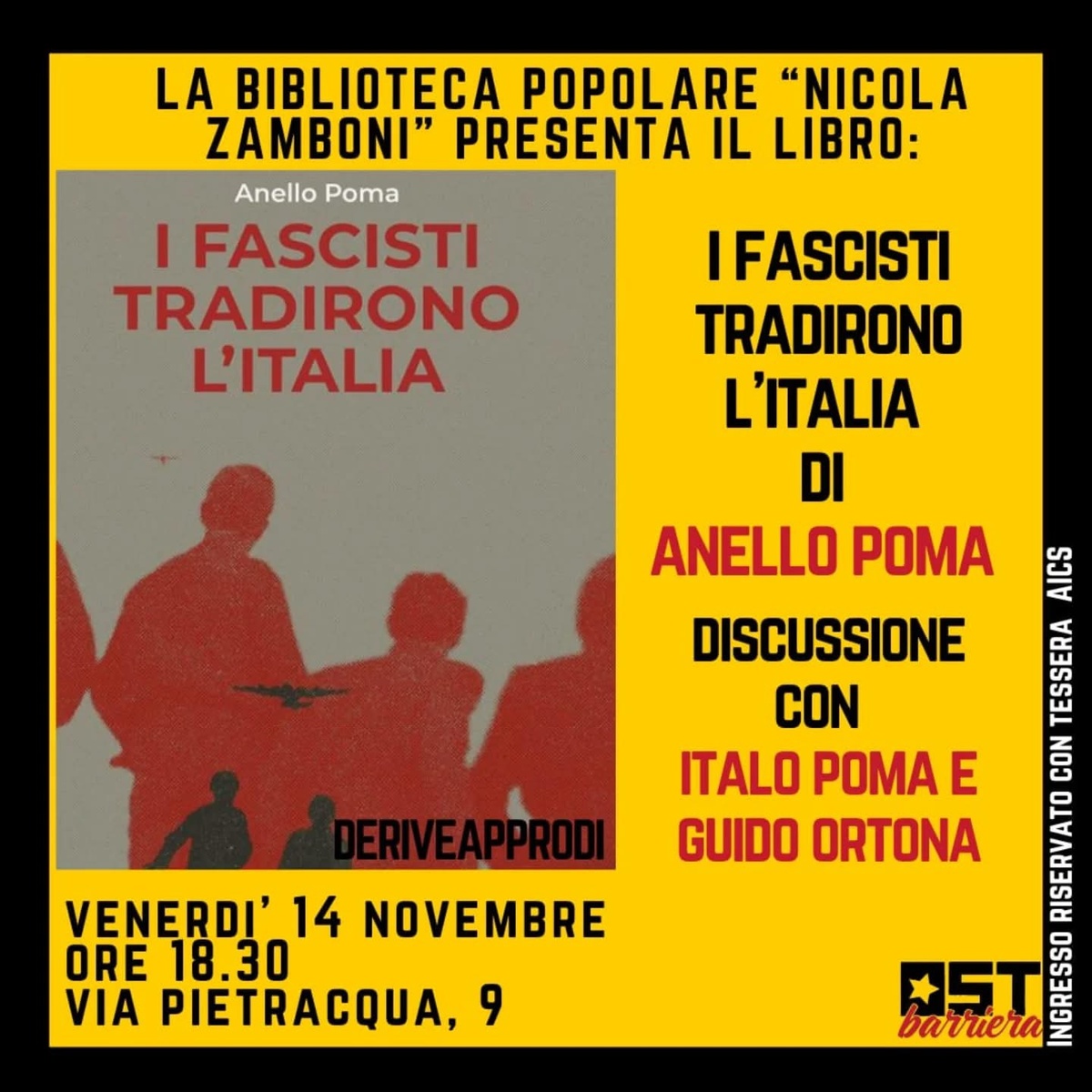 "I fascisti tradirono l'Italia" di Anello Poma, a cura di Italo Poma e Alberto Zola (ed. Deriveapprodi)