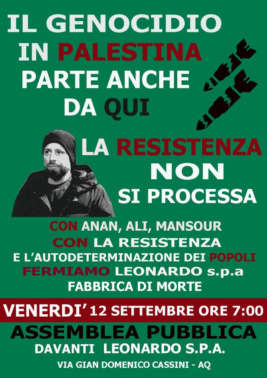 L’Aquila, 12 settembre: Con Anan, Alì e Mansour, La guerra parte anche da qui. Contro Leonardo S.p.A.!