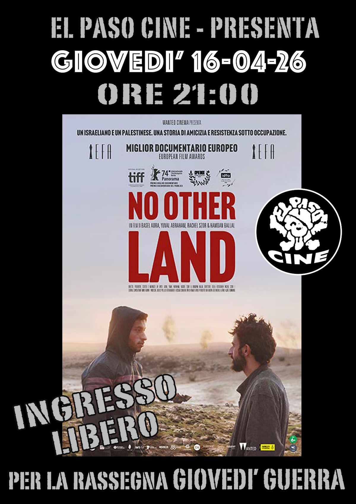 PER LA RASSEGNA GIOVEDÌ GUERRA PROIEZIONE DEL FILM NO OTHER LAND