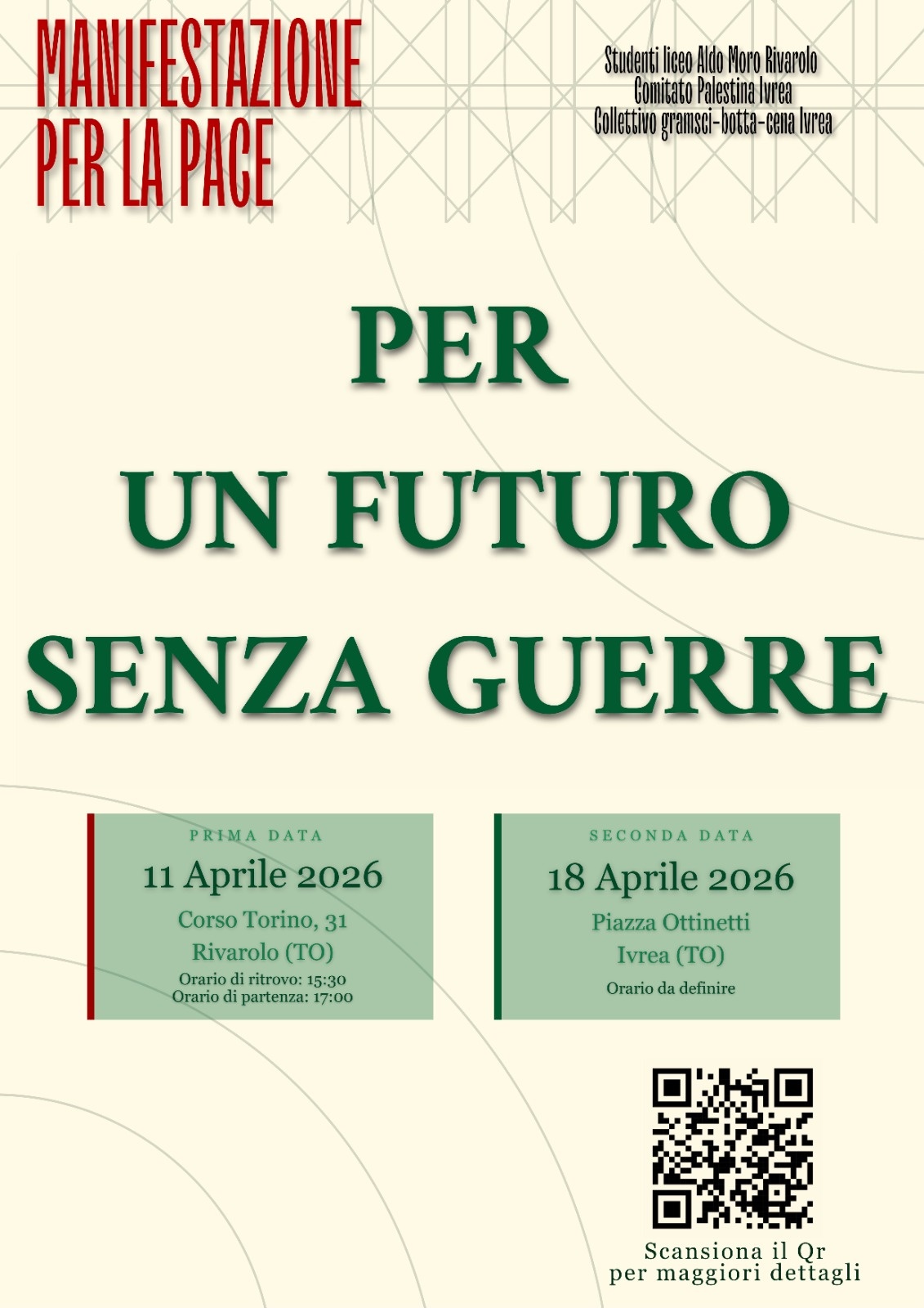 "Perche' scendete in piazza solo per guerre lontane ?" Le guerre, i morti, le bombe provocano spesso sdegno nelle persone alimentando un sentimento umanitario, importante per restare umani. Ma non si tratta solo di questo.... La solidarietà si spinge oltre quando vedi che sul f fronte ci vanno sempre persone comune per interessi di miliardari, politici o guerrafondai. In Ucraina, in Palestina, in Iran come in Libano o in Sudan a rimetterci sono sempre civili studenti lavoratori e disoccupati obbligati con la forza ad arruolarsi. Anche se in Italia e nella UE non c'e' guerra, sempre piu' si parla di riarmo e guerra Militare, già obbligatoria in Germania Austria e Croazia. Paghiamo le guerre tutti i giorni con sacrifici ! Bassi salari, ospedali e scuole meno efficienti, carovita, precarietà. BASTA ! arruolati con noi per un FUTURO SENZA GUERRA.