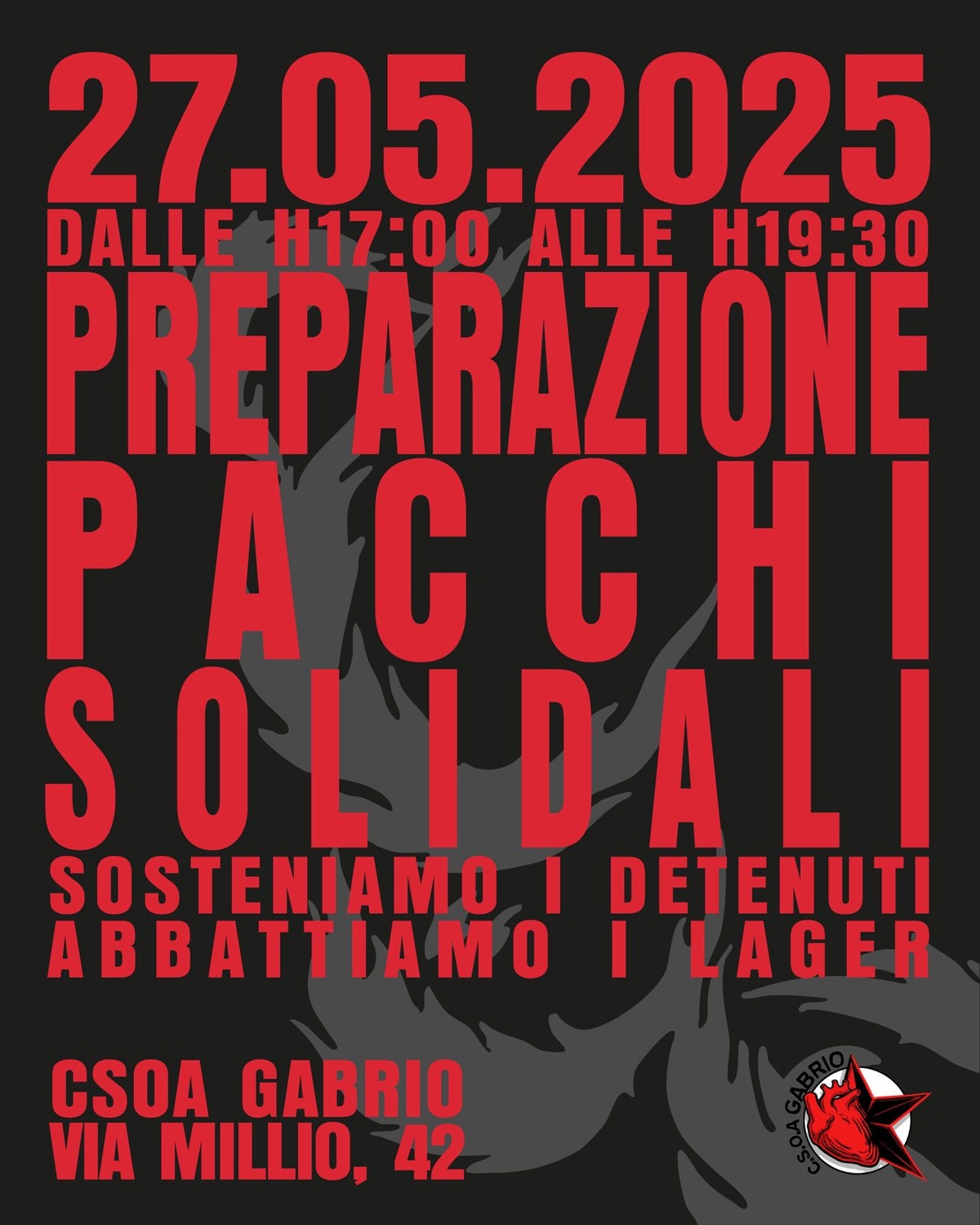 Mentre prosegue la raccolta solidale per i reclusi nel CPR di corso Brunelleschi, MARTEDÌ 27 dalle 17.00 alle 19.30 prepariamo insieme i pacchi che verranno consegnati nei giorni successivi ai detenuti.