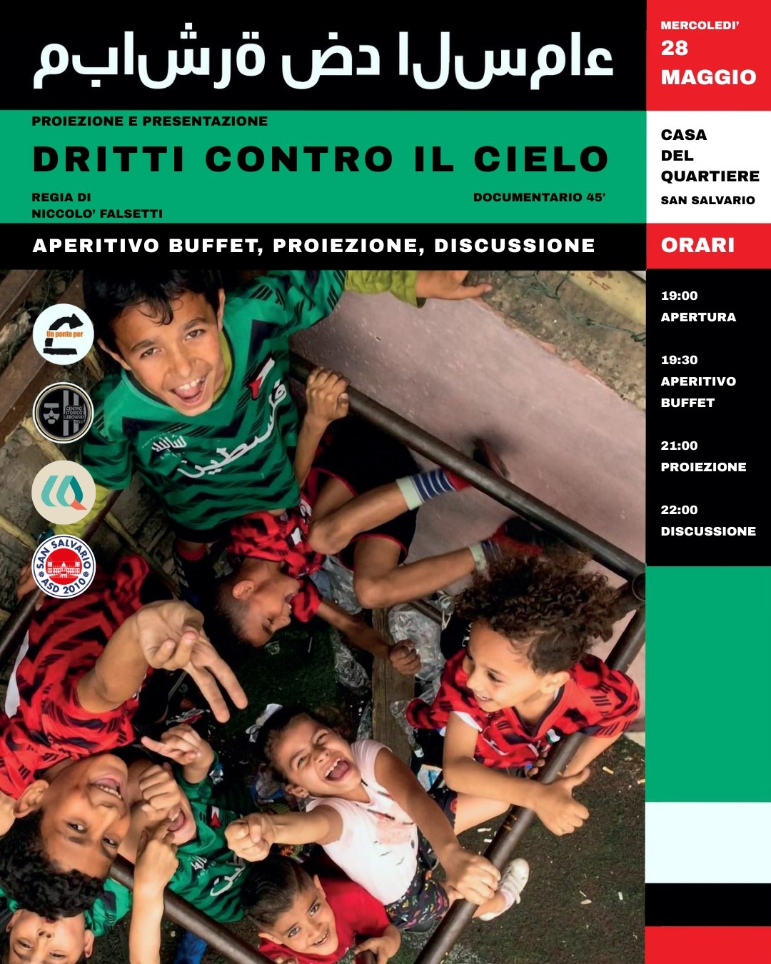 Proiezione del docu-film Dritti Contro il Cielo, prodotto dalla ONLUS Un Ponte Per e dal centro sportivo Centro Storico Lebowski, regia Niccolò Falsetti (2024).