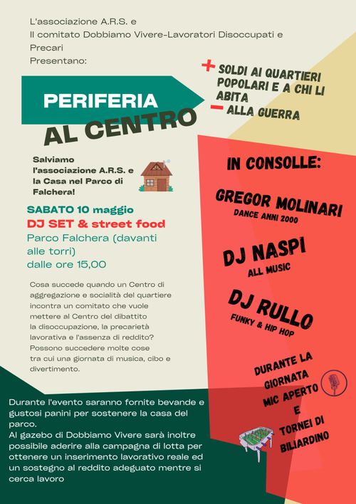 Periferia al centro Saturday, May 10, 03:00 PM-09:00 PM Saturday 10 May 21:00 Casa nel parco di Falchera Parco Falchera