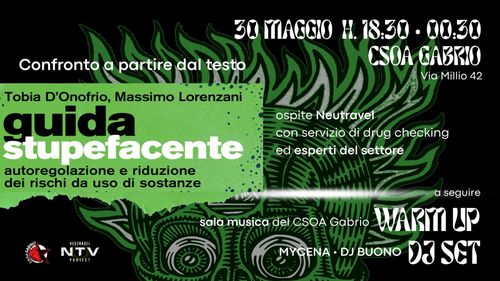 Presentazione di Guida stupefacente - apericena e djset Friday, May 30, 06:30 PM-12:00 AM Saturday 31 May 00:00 Csoa Gabrio Via Millio 42, Torino Discussione apertaAntiproAperitivo benefitPresentazione libridjsetDrug checking