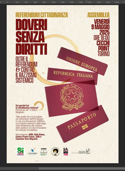 Doveri senza diritti - Oltre il referendum e contro il razzismo sistemico Friday, May 09, 06:00 PM-08:00 PM Friday 9 May 20:00 Cecchi point Via antonio cecchi 17 cittadinanzaantirazzismodocumenti per tutt