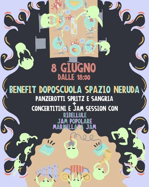 Panzerotti e jam benefit doposcuola neruda Sunday, Jun 08, 06:00 PM-11:00 PM Sunday 8 June 23:00 Spazio Popolare Neruda Corso Ciriè 7, 10124, Torino Jam sessionconcertojam sessionAperitivo benefitbenefitBenefit